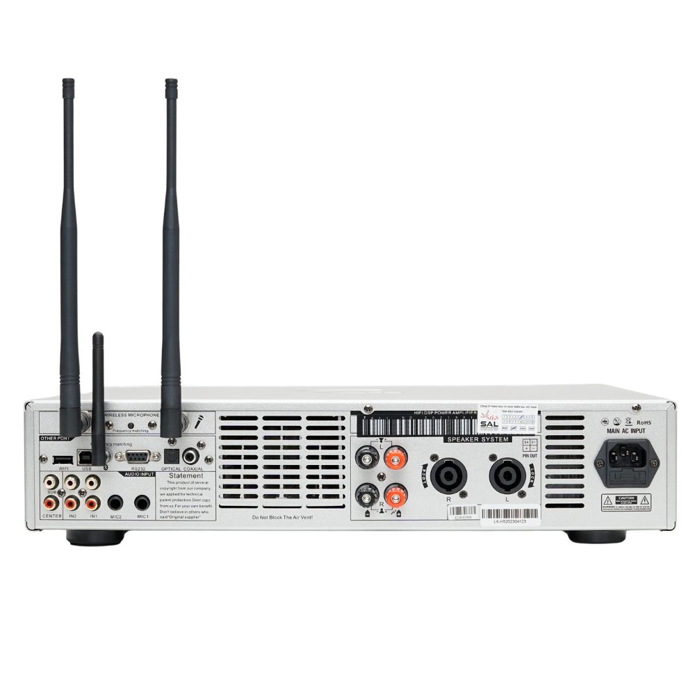 - Cổng kết nối: Mic, Coaxial, Output SUB, CENTER, USB computer, USB WIFI, RS232