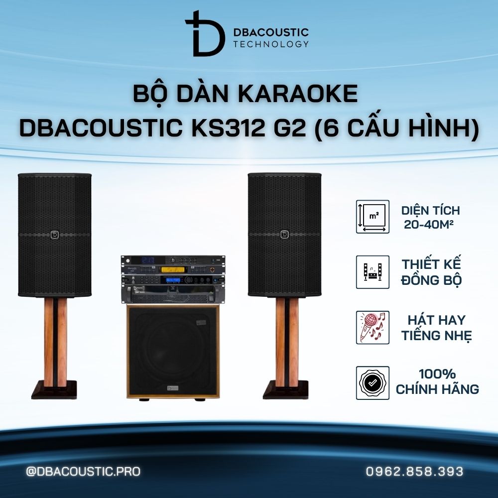 DBacoustic KS312 G2 là bộ dàn karaoke gia đình đáng mua nhất Tết 2026 này với 6 cấu hình, 6 phân khúc giá thoải mái lựa chọn. Liên hệ ngay tới hotline của DBacoustic.pro để được tư vấn chuyên sâu và chọn lựa bộ dàn phù hợp nhất cho dịp tết này. Hoặc ghé thăm trực tiếp showroom của DBacoustic.pro tại địa chỉ: Số 18 196/1A Hồ Tùng Mậu, Phú Diễn, Bắc Từ Liêm, Hà Nội và nghe thử chi tiết bộ dàn.