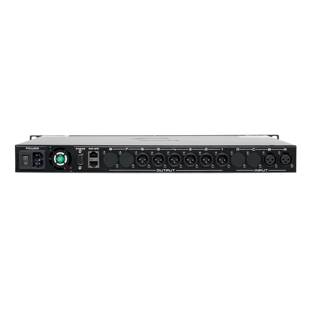 - Tích hợp các tính năng xử lý như parametric EQ, dynamic EQ, limiter và crossover filter cho từng ngõ ra, cho phép tinh chỉnh linh hoạt theo từng nhu cầu cụ thể.