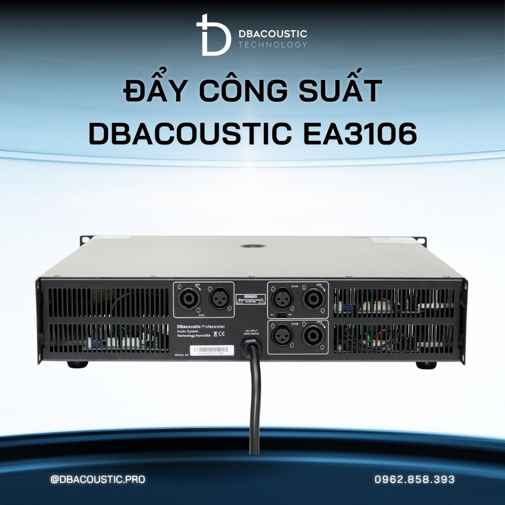 DBAcoustic EA3106 là cục đẩy công suất sở hữu công suất mạnh, thiết kế ấn tượng và rất đáng mua để bổ sung cho dàn karaoke gia đình. Nếu bạn đang muốn sở hữu cục đẩy công suất DBAcoustic EA3106 chính hãng với mức giá tốt nhất thì dbacoustic.pro là địa chỉ nhất định không được bỏ qua khi mua hàng. Liên hệ ngay hotline 0962.858.393 hoặc truy cập website dbacoustic.pro để sở hữu chính hãng sản phẩm này ngay hôm nay.