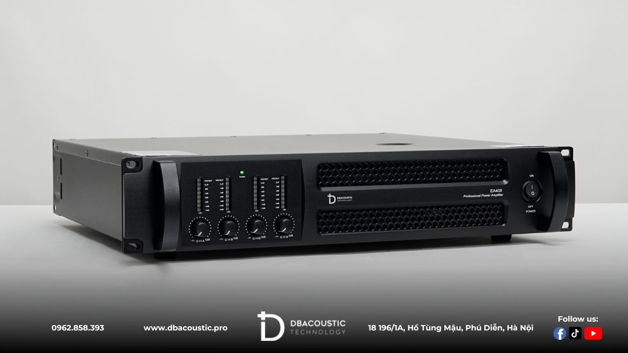 DBacoustic EA408 là dòng đẩy công suất 4 kênh mới nhất thuộc series EA, sở hữu công suất mạnh mẽ, khả năng vận hành ổn định và thiết kế ấn tượng. Đây là lựa chọn lý tưởng cho các dàn âm thanh sân khấu, hội trường, sự kiện và hệ thống karaoke gia đình hay kinh doanh chuyên nghiệp.