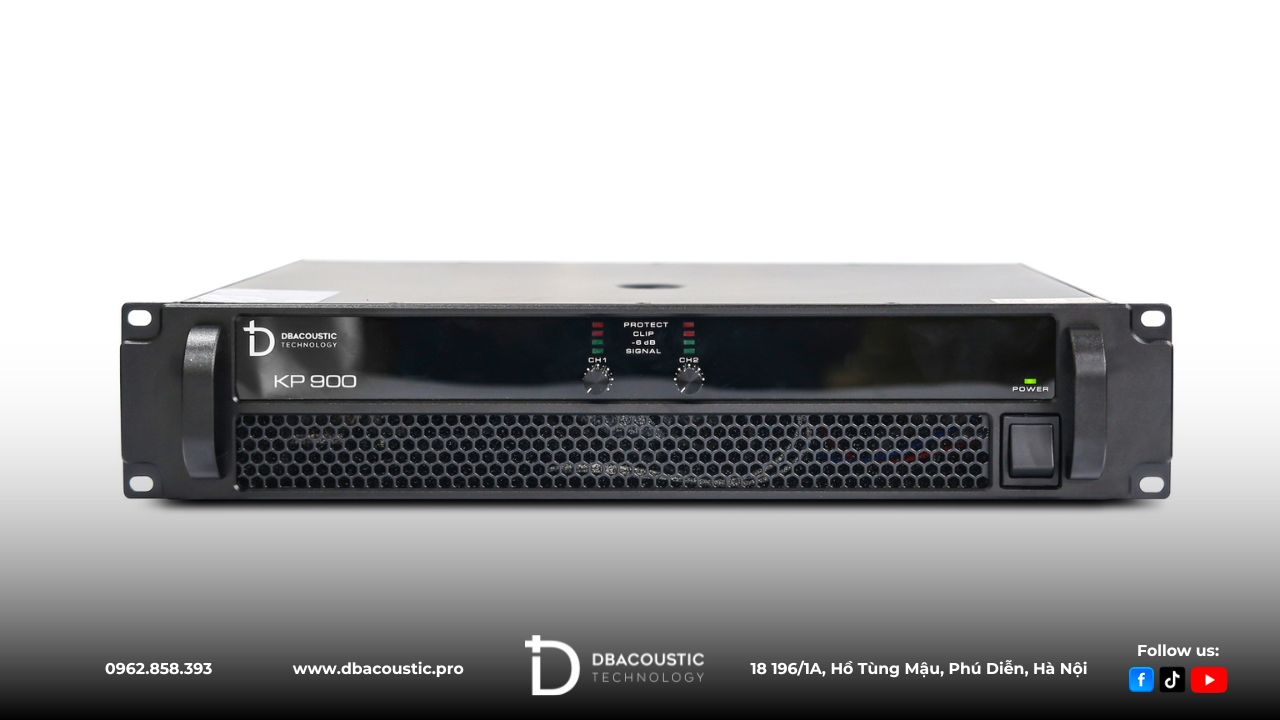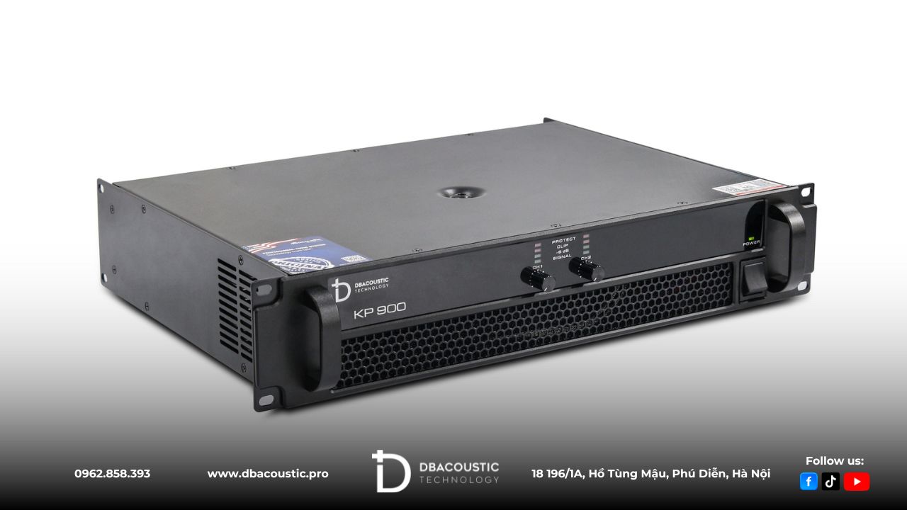 - Cục đẩy công suất DBAcoustic KP900 trang bị 2 kênh công suất độc lập, mỗi kênh 900W (8Ω) và 1200W (4Ω), Bridge 2400W, dễ dàng phối ghép cùng loa bass 40cm.