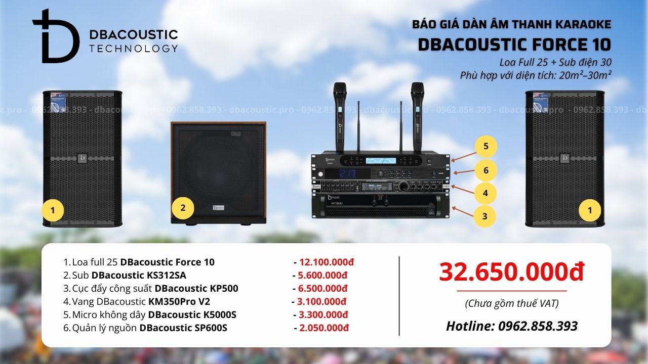 Nếu bạn đang tìm một dàn karaoke gia đình dễ dùng, hát nhẹ, ổn định và ít phát sinh rắc rối, DBacoustic Force 10 là cấu hình rất đáng cân nhắc trong tầm giá, hãy liên hệ trực tiếp hotline 0962.858.393 của DBacoustic.pro để được tư vấn chi tiết cho bộ dàn này.