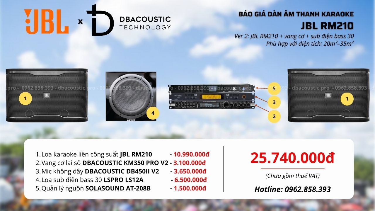 Cấu hình 2: JBL RM210 + vang cơ + sub điện bass 30