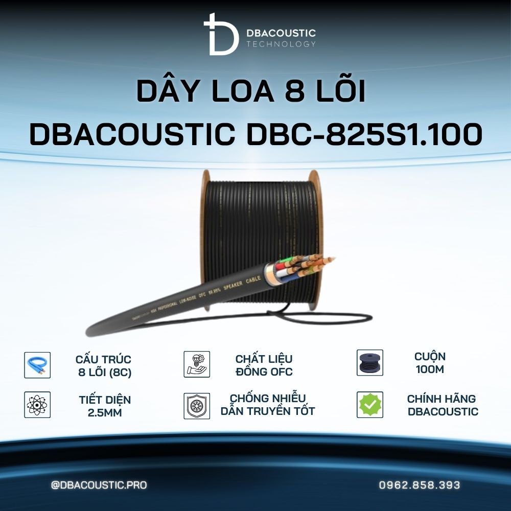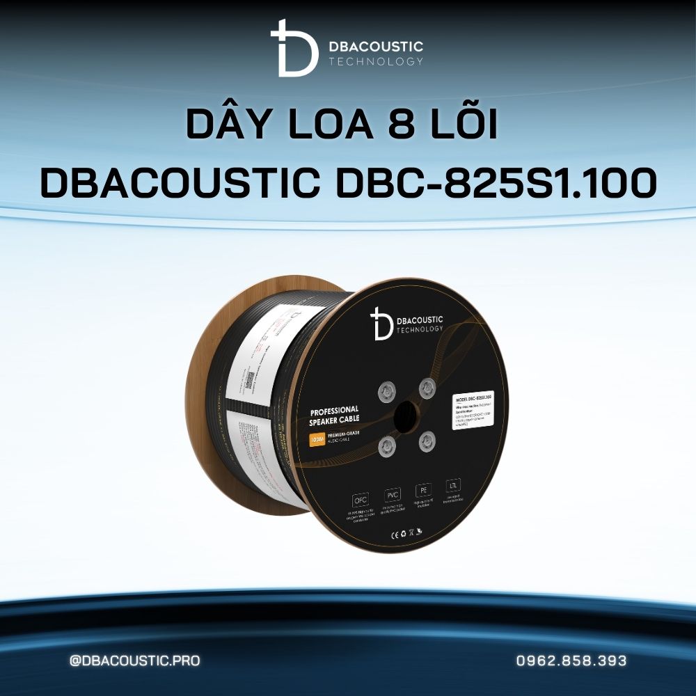 Dây loa 8 lõi dBacoustic DBC-825S1.100 không chỉ là một phương tiện truyền dẫn, mà là một giải pháp toàn diện, mạnh mẽ và bền bỉ. Đối với các kỹ sư âm thanh, đội ngũ thi công và chủ đầu tư, đây là một sự đầu tư hiệu quả nhằm tối ưu hóa hiệu suất của toàn hệ thống, tiết kiệm thời gian lắp đặt và đảm bảo chất lượng âm thanh vượt trội cho mọi công trình. Liên hệ ngay hotline của dbacoustic.pro để được tư vấn cụ thể nhất về dây loa 8 lõi Dbacoustic DBC-825S1.100 và các sản phẩm karaoke, bộ dàn karaoke gia đình giá rẻ,… khác.