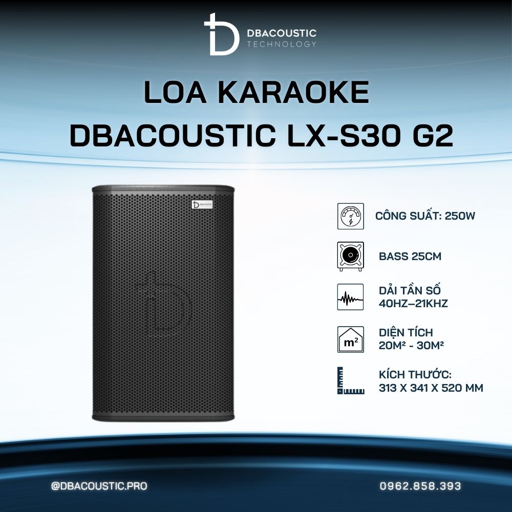 Loa karaoke DBAcoustic LX-S30 G2 là dòng loa dành cho phân khúc karaoke gia đình hay các công trình sự kiện chuyên nghiệp, diện tích 20-30m2. Sản phẩm trang bị bass 25cm, công suất 250W vô cùng ấn tượng.