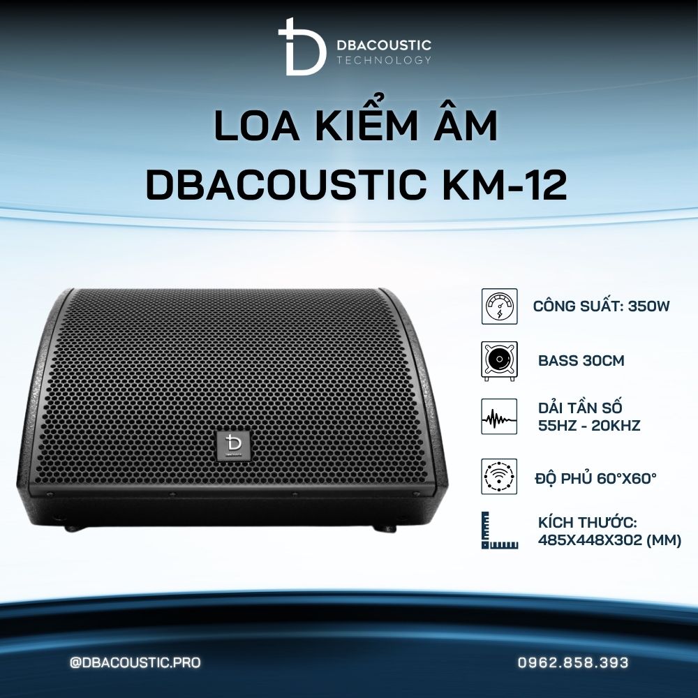 - Dbacoustic KM-12 là mẫu loa Monitor (loa kiểm âm) bass 30cm chuyên phục vụ cho các sân khấu biểu dẫn, sân khấu ngoài trời, phòng trà, bar, club