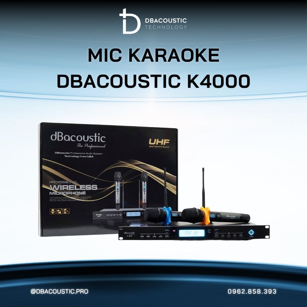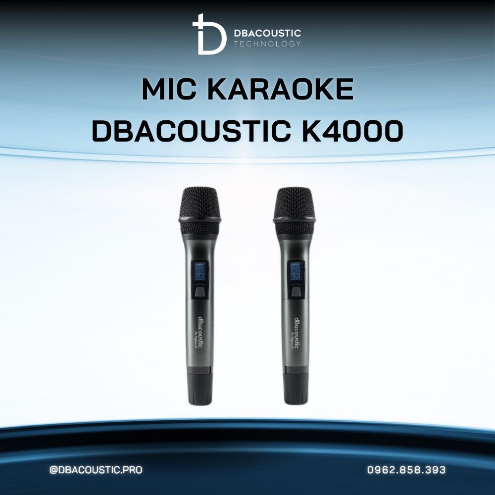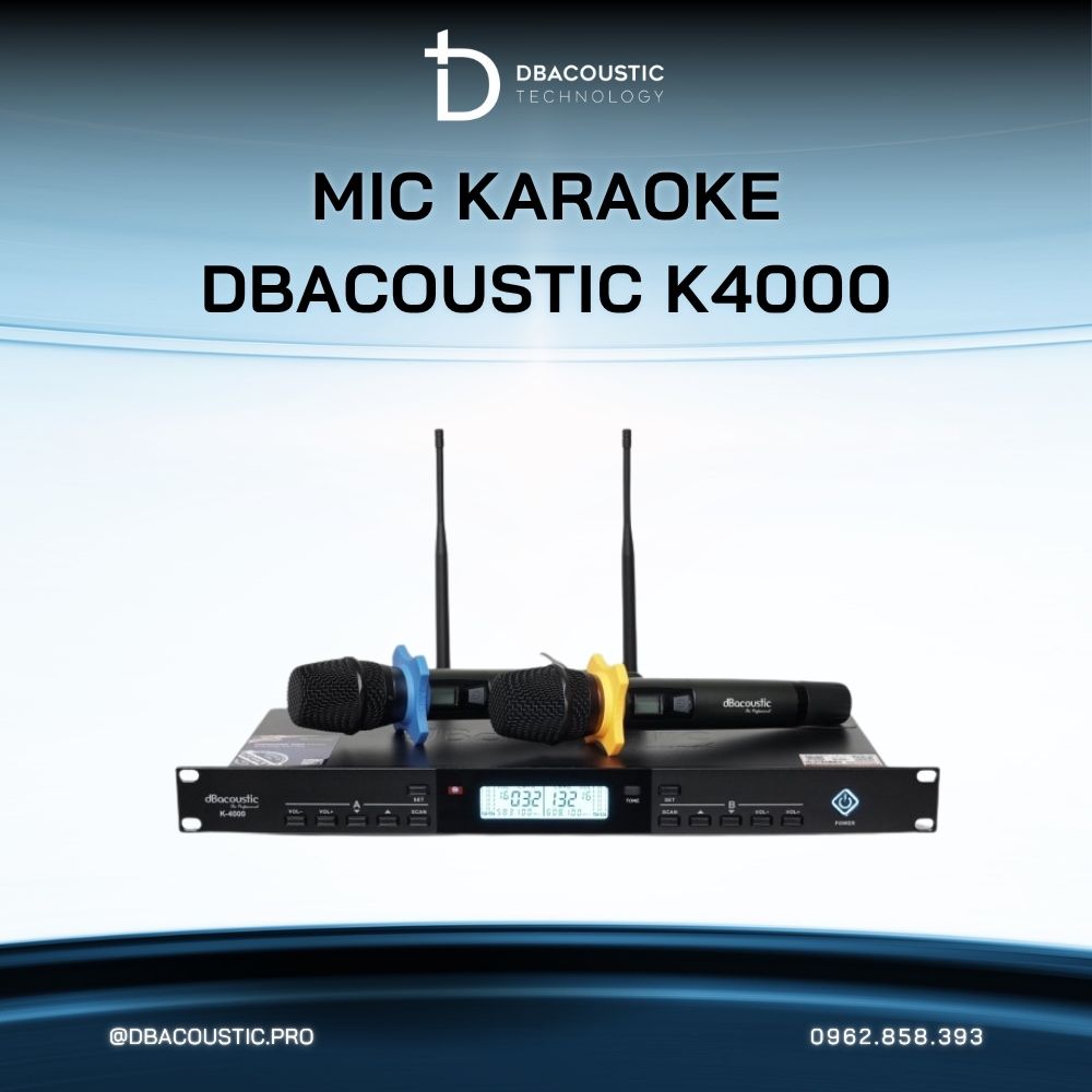 Mic không dây DBAcoustic K4000 là dòng micro không dây thuộc phân khúc phổ thông dễ dàng tiếp cận với mọi khách hàng, phục vụ tốt cho nhu cầu karaoke gia đình, phòng hát kinh doanh. Sở hữu nhiều tính năng của một dòng micro cao cấp, xử lý chất âm tốt hát nhẹ bay bổng.