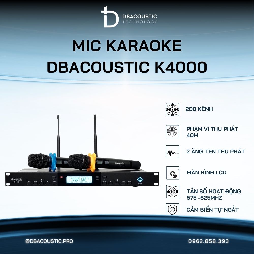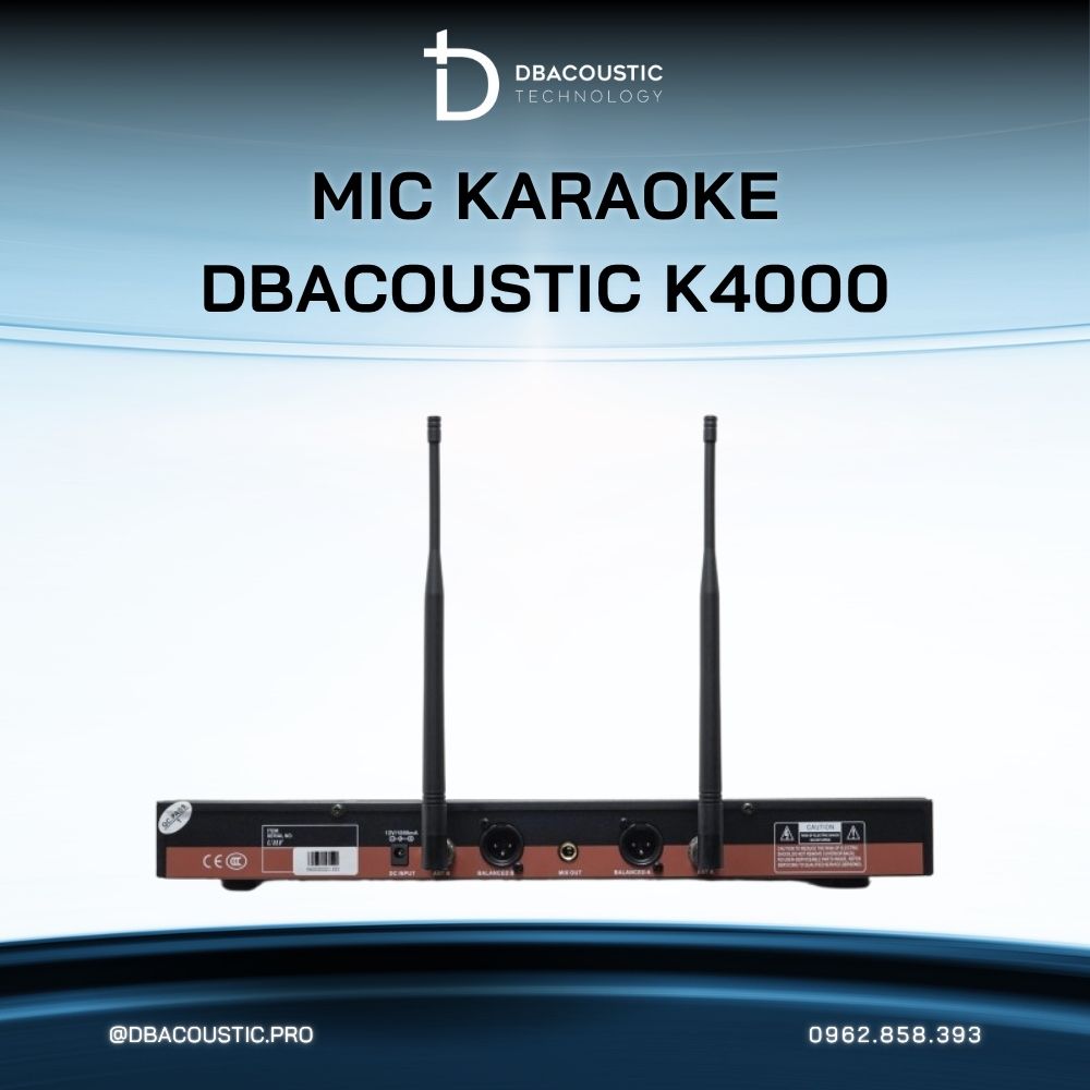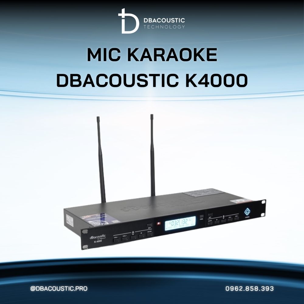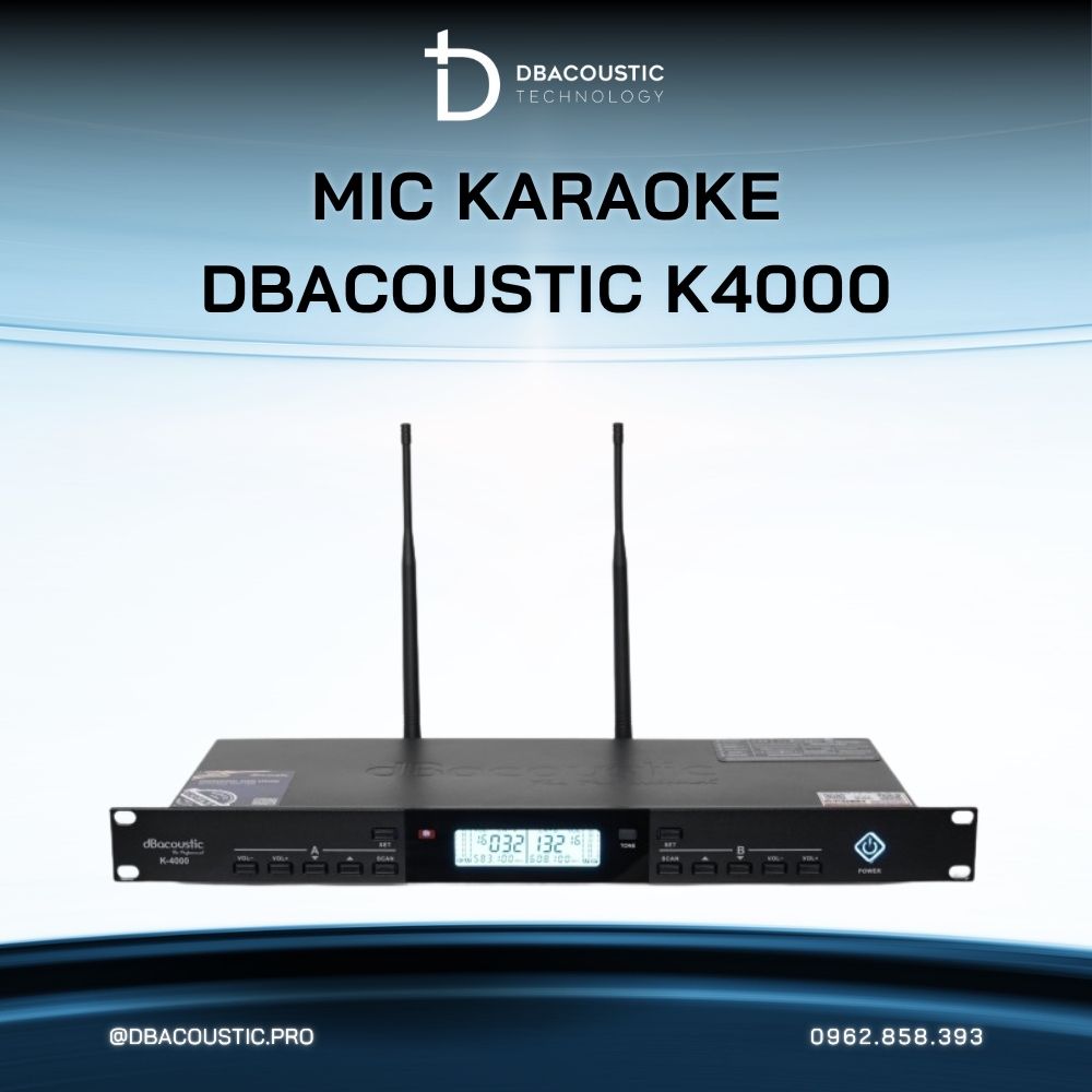 Mic không dây DBAcoustic K4000 là dòng micro không dây thuộc phân khúc phổ thông dễ dàng tiếp cận với mọi khách hàng, phục vụ tốt cho nhu cầu karaoke gia đình, phòng hát kinh doanh. Sở hữu nhiều tính năng của một dòng micro cao cấp, xử lý chất âm tốt hát nhẹ bay bổng.