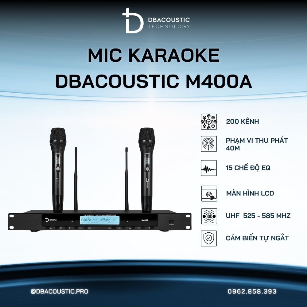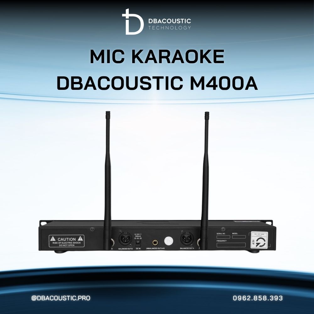 Mic không dây Dbacoustic M400A là dòng micro không dây thuộc phân khúc phổ thông dễ dàng tiếp cận với mọi khách hàng, phục vụ tốt cho nhu cầu karaoke gia đình, phòng hát kinh doanh. Sở hữu nhiều tính năng của một dòng micro cao cấp, xử lý chất âm tốt hát nhẹ bay bổng.