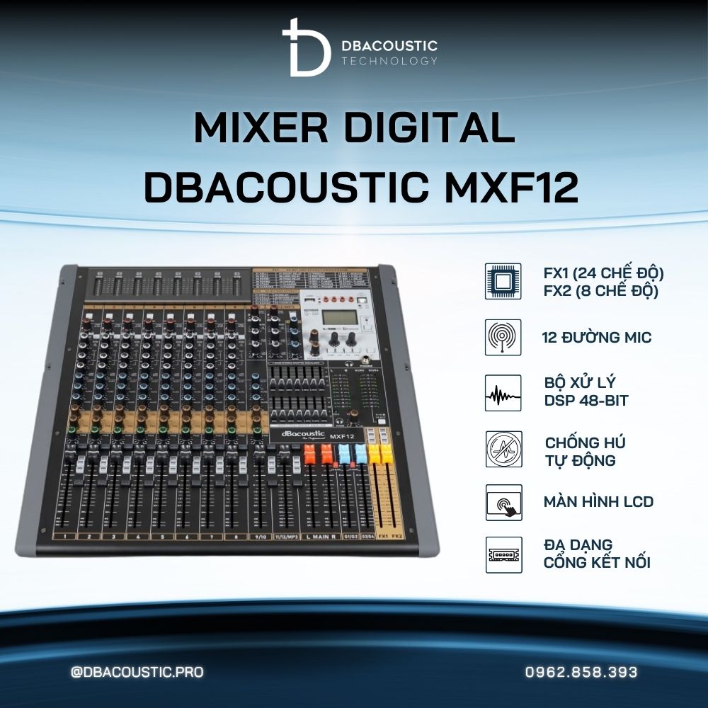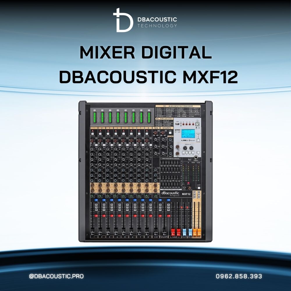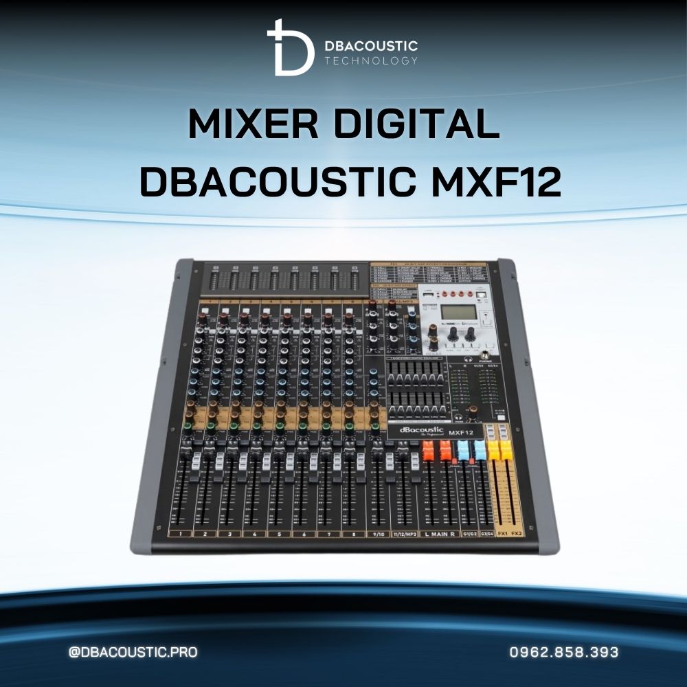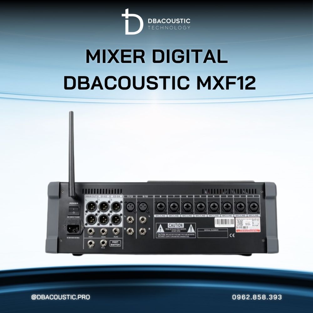 DBacoustic MXF12 là mixer kỹ thuật số cho khả năng xử lý tín hiệu âm thanh chuyên dụng dành cho hệ thống cần độ chi tiết cao, hiệu ứng đẹp và độ bền ổn định. Sản phẩm sở hữu 8 đầu vào mic/line, 2 stereo input và nhiều cổng out chuyên dụng, cho khả năng phối ghép dễ dàng, vận hành linh hoạt từ dàn karaoke cao cấp đến sân khấu lớn đòi hỏi chuyên nghiệp.
