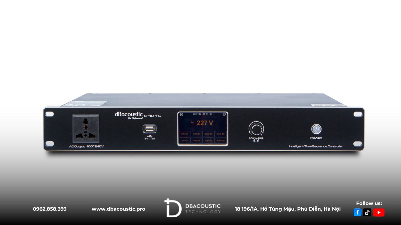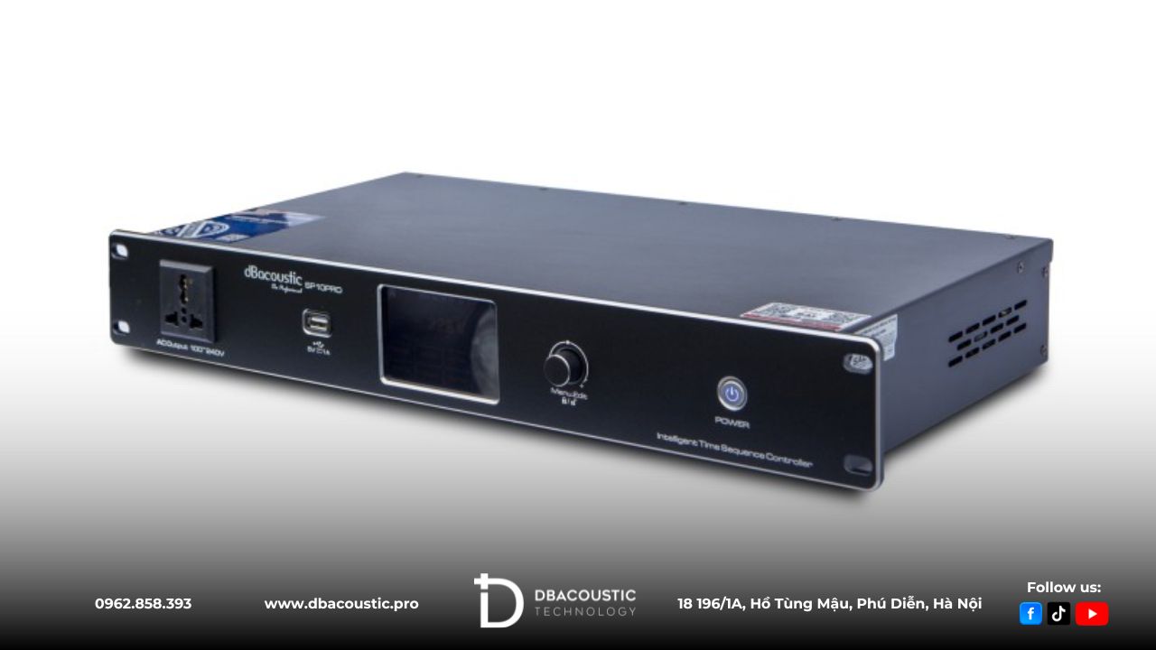 DBAcoustic SP10 Pro là thiết bị quản lý nguồn chuyên nghiệp cho hệ thống âm thanh sân khấu, karaoke, sự kiện. Sản phẩm trang bị 8 kênh điều khiển độc lập, tính năng bật/tắt tuần tự thông minh, khả năng bảo vệ quá tải và cổng điều khiển từ xa RS232, SP10 Pro giúp đảm bảo an toàn và ổn định tối đa.