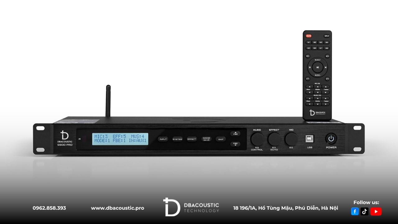 Vang số DBAcoustic S600 PRO sở hữu công nghệ xử lý âm thanh đỉnh cao, hiệu năng vượt trội với bộ xử lý DSP 48-bit, hỗ trợ kết nối Bluetooth, cắt hú rít tự động,…. S600 PRO phù hợp sử dụng trong dàn karaoke gia đình, hệ thống âm thanh cao cấp,…